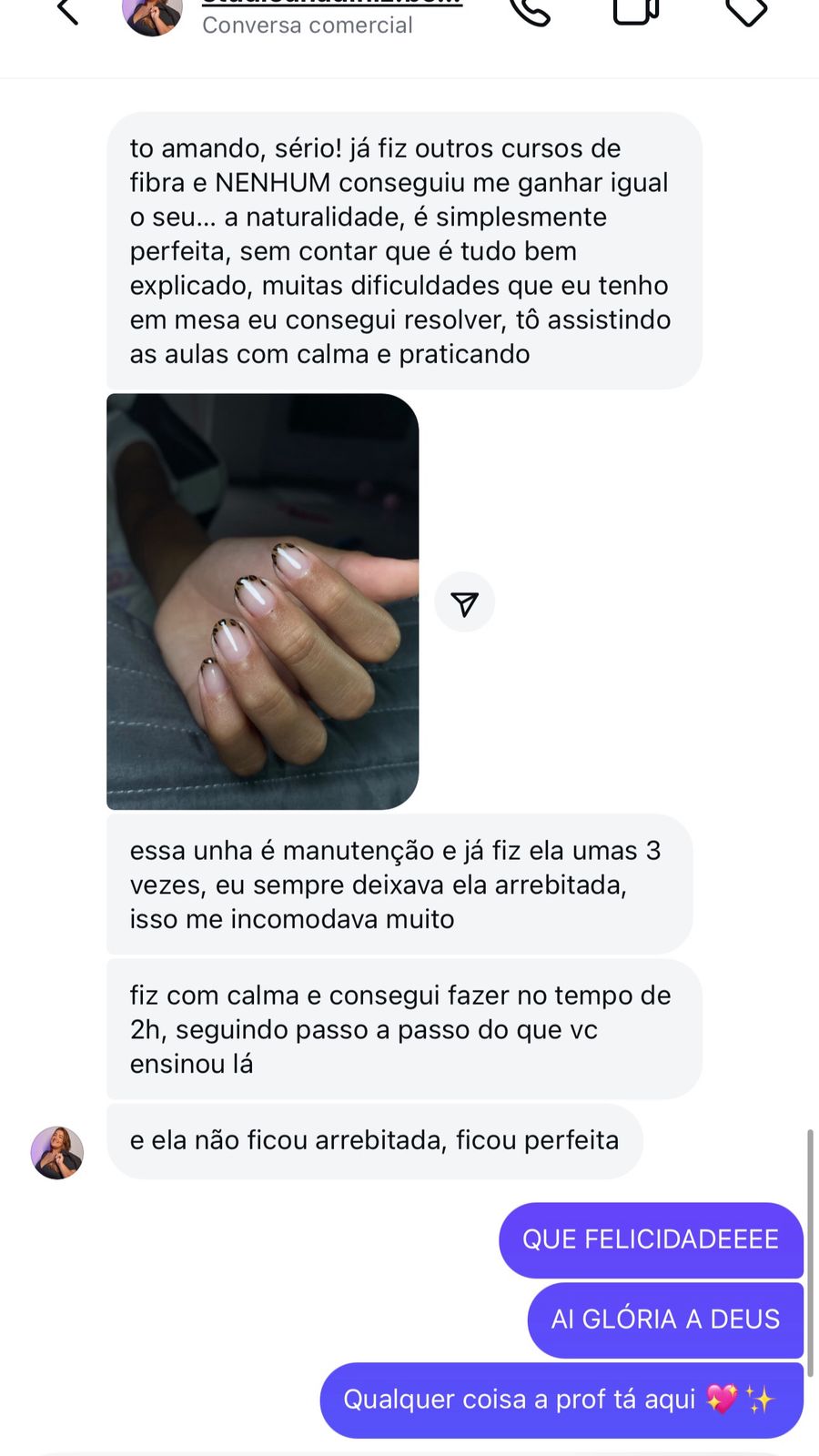 Com aulas diretas e visuais, você aprende a preparar, estruturar e finalizar unhas com qualidade de salão — evitando descolamento, excesso de produto e acabamento amador.