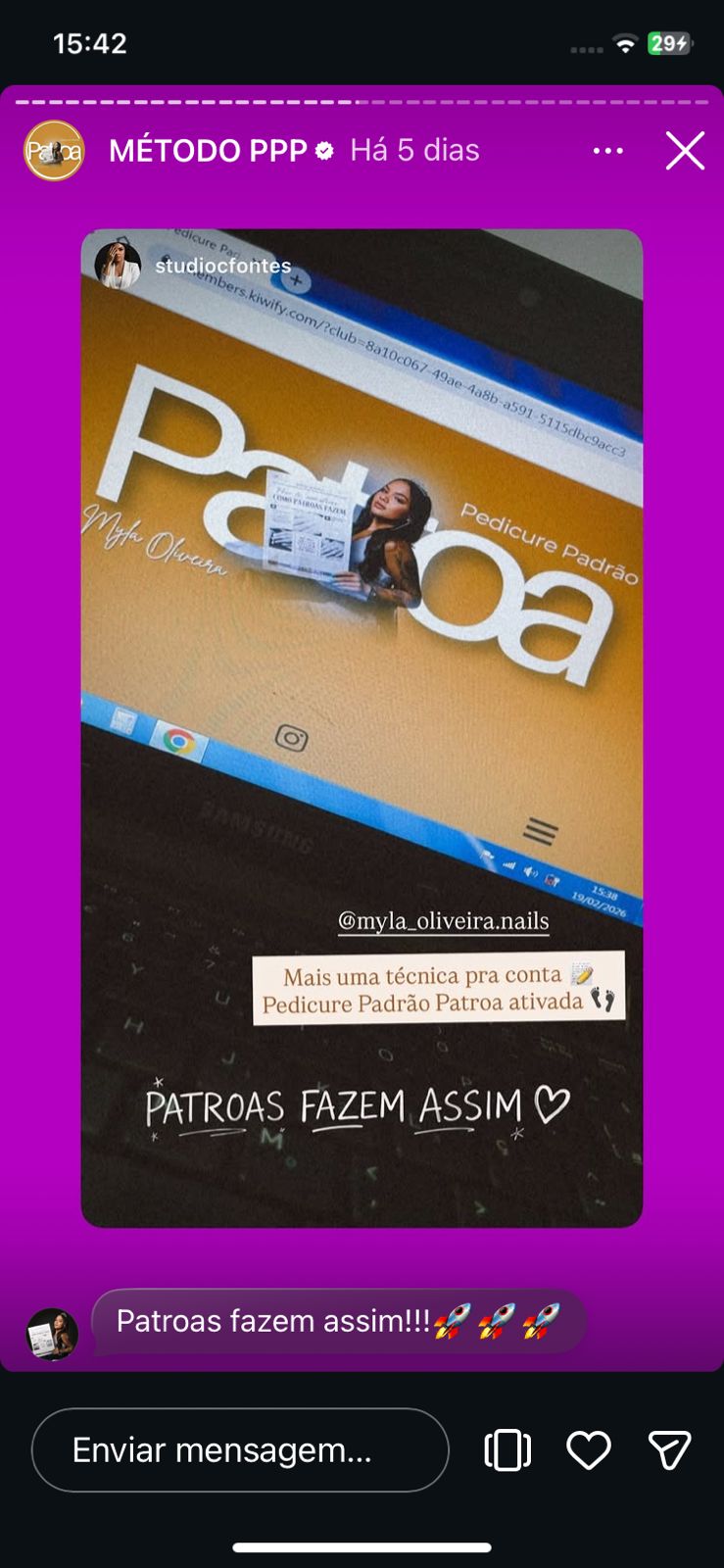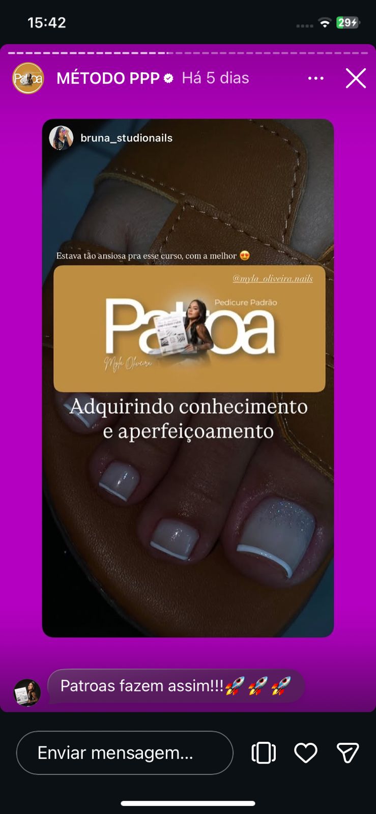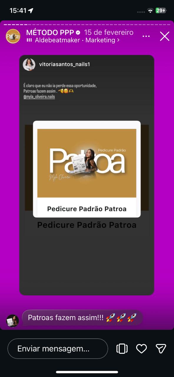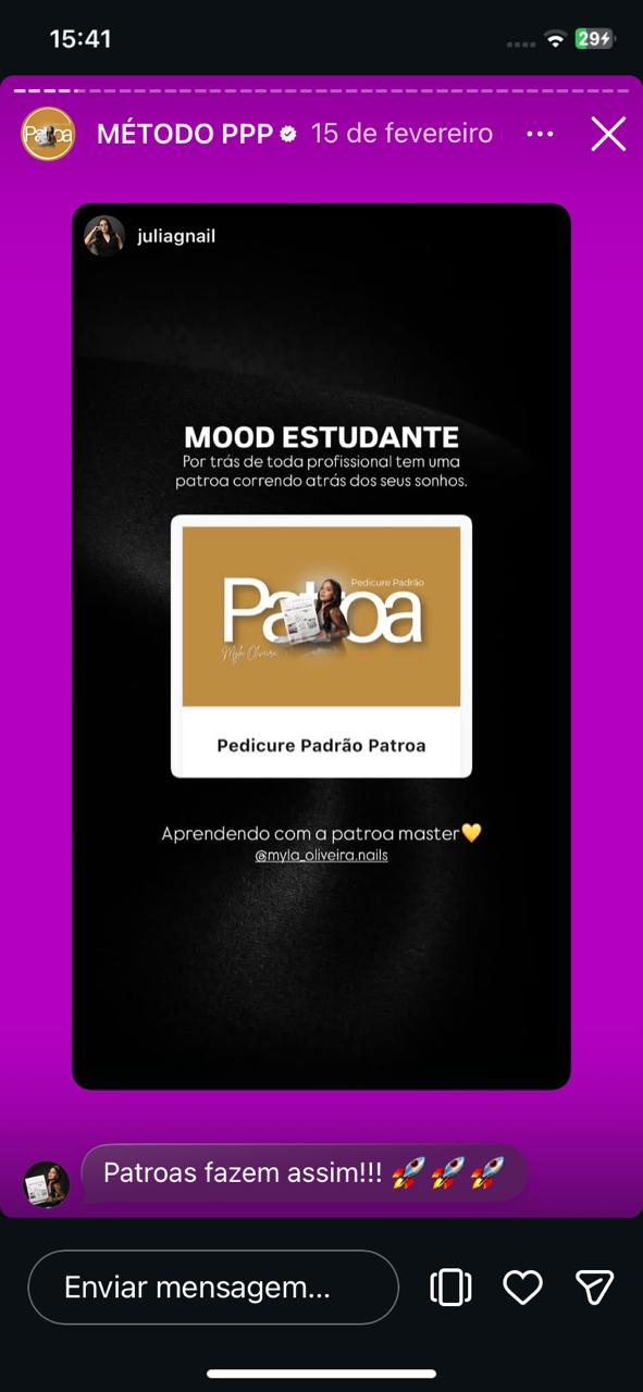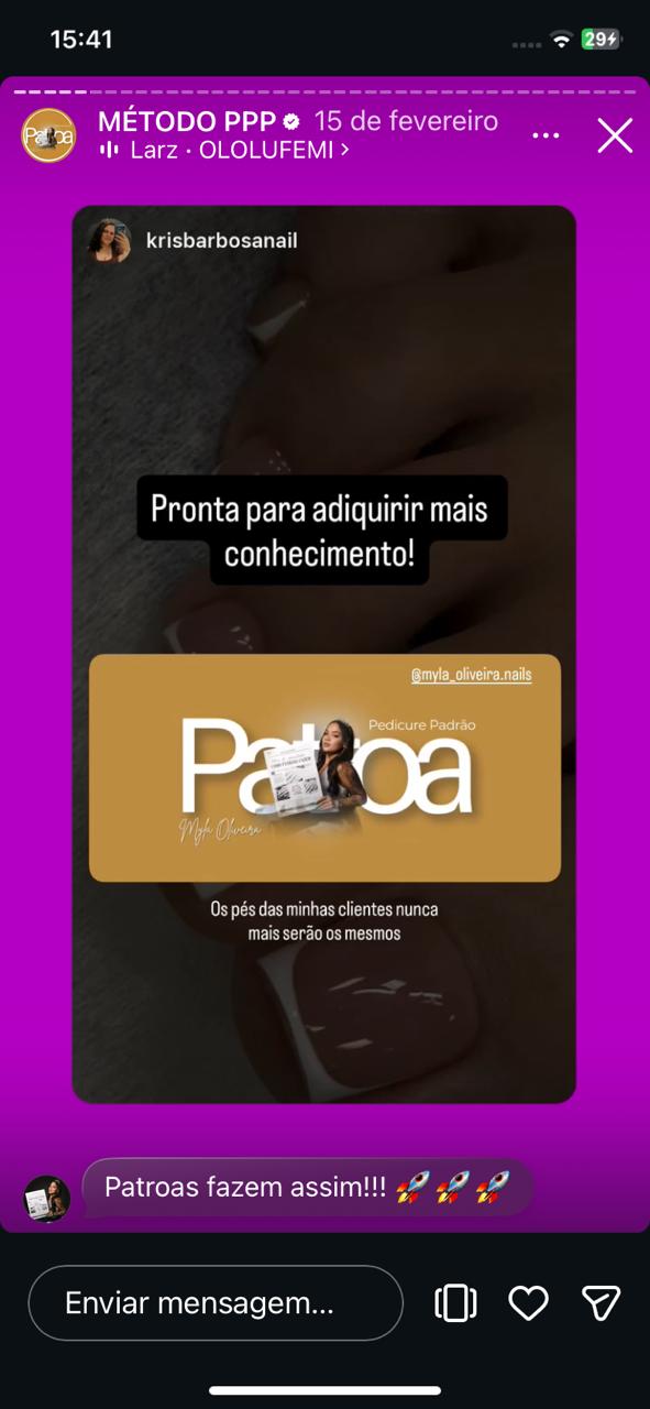 Enquanto você vive no automático, sem conseguir escalar o seu faturamento, se destacar e sofre pra aumentar o preço, várias alunas já estão colocando o Pedicure Padrão Patroa em prática!